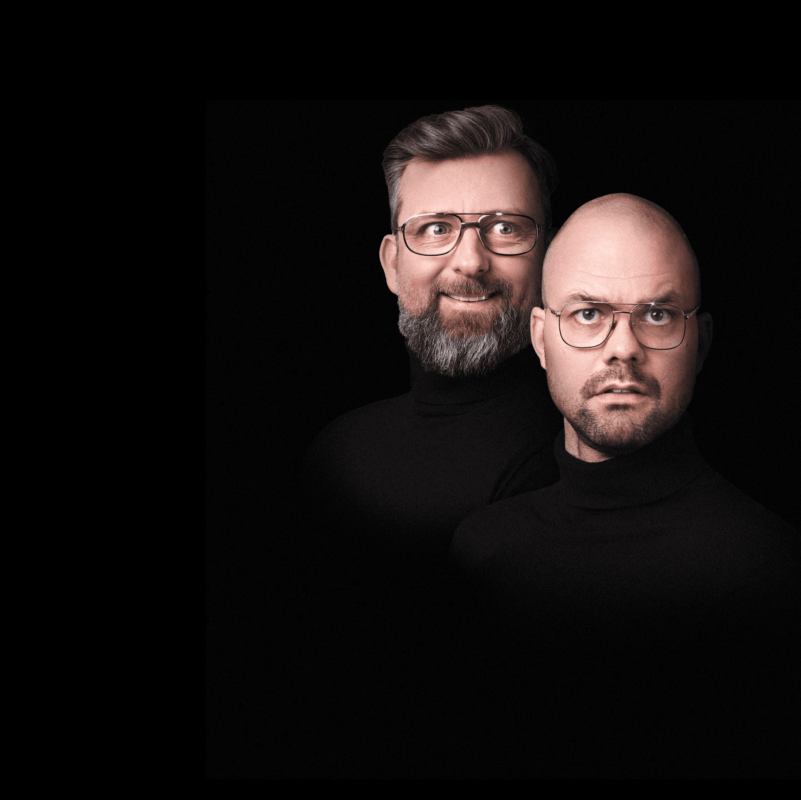 Følg Berrum & Beyer i Podimo og bli den første til å få beskjed når Martin og Lars slipper ny merch i butikken.